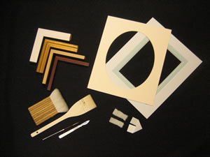 Auswahl an diversen Passepartout, Bilderrahmen und Gläsern